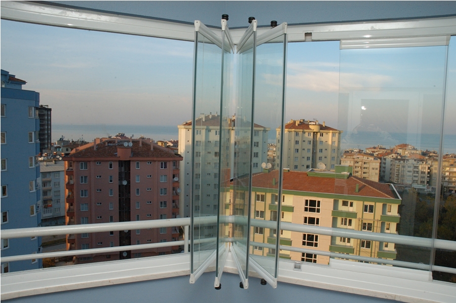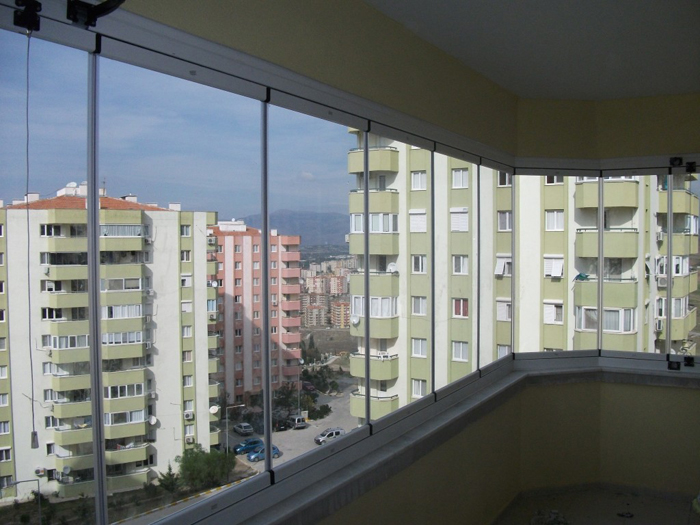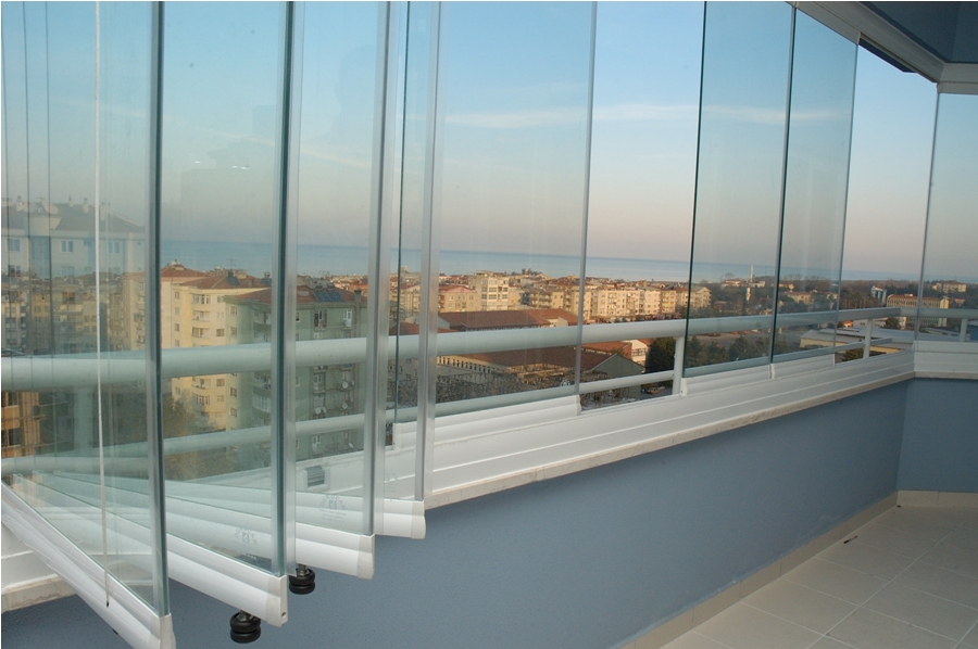 Eşiksiz sürme cam balkon eşikli sürme cam sisteminden tek farkı altta sadece 6 mm yüksekliğinde camlarda ki alt tekerlere yön vermek için bir çıta bulunur.